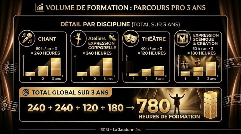 Volume horaire : 260 heures / an (780 heures sur 3 ans).